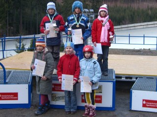 Als letztes Rennen der Wintersaison 2007 / 08 standen für die Rodler der Jugend D die Sachsenmeisterschaften um den ENSO-Pokal auf dem Terminplan. Auch dieses Mal fanden die Jüngsten sehr gute Trainings- und Wettkampfbedingungen vor und somit war ein gutes Saisonfinale möglich. Sachsenmeister 2008 wurden Maximilian ILLMANN (ESV Lok Zwickau) und Jessica TIEBEL (SSV Altenberg). Die Silbermedaillen gingen an Yevgenij BABURKIN (DRE) und Nadine WROBLEWSKI (BAU). Bronze gewannen Marcus KRAFT (CHE) und Laila-Mariella POLEY (ZWI). Text: K.Schwabe - Fotos: K.Schwabe |